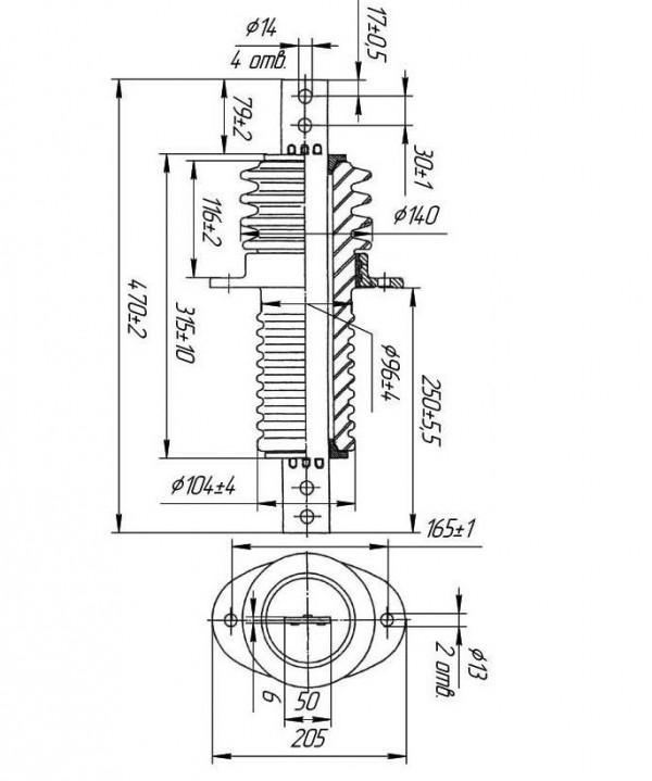 Материал изоляционной части - электротехнический фарфор подгруппы 110 ГОСТ 20419-83 и соответствует требованиям ГОСТ 5862-79.