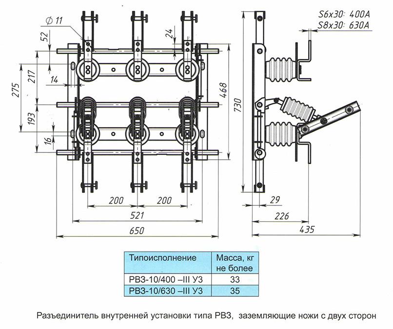 Описание разъединителя РВЗ-10/630 УХЛ2