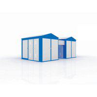 Конструктивно киосковые 2КТП представляют собой две сборно-сварочных конструкции, которые выполнены из упрочненной прокатной стали. При этом 2 киоска стоят на расстоянии 1 метра друг от друга.